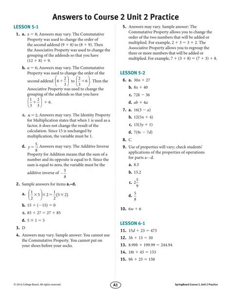 Free PDF Springboard Mathematics Course 1 Unit 2 Answers Epub Internet Archive